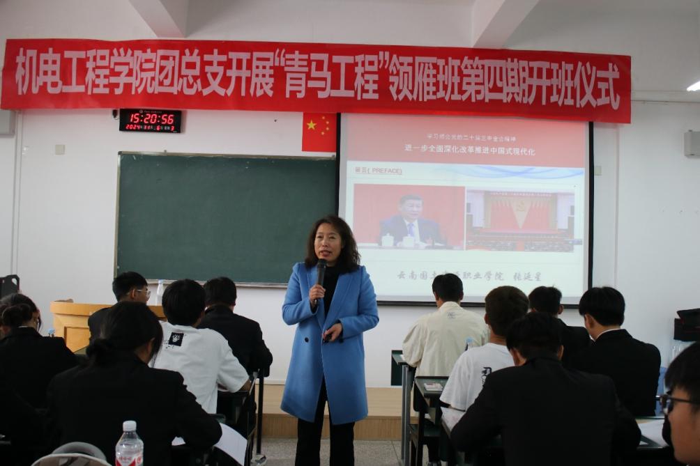 11月6日下午,澳门网投十大信誉平台团总支“青马工程”领雁班第四期第一讲在笃行楼314教室正式拉开帷幕。本次团课有幸邀请到学校党委委员、宣传部部长、马克思主义学院院长张延星老师,以《学习领会党的二十届三中全会精神》为专题,为第四期青马班的全体学员带来了精彩的授课。