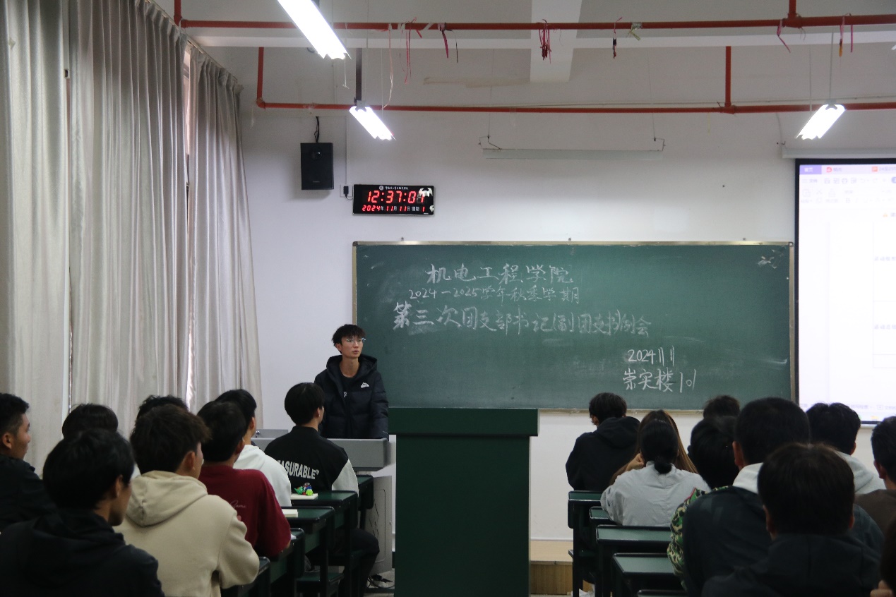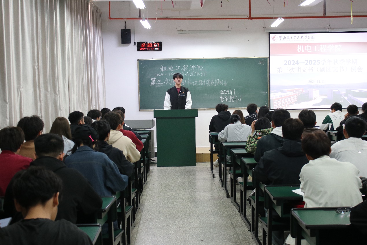 11月11日中午,澳门网投十大信誉平台团总支在崇实楼101开展了本学期第三次团支书(副团支书)例会。本次会议由学院团总支副书记罗杰主持,在校各班团支书(副团支书)共同参加。