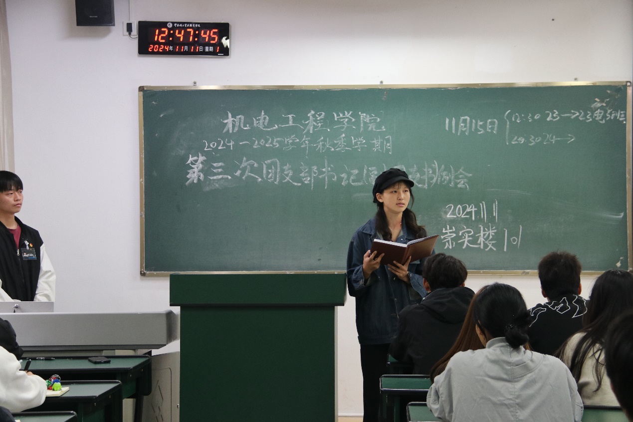 最后,学院学生会主席团成员李子琦对接下来的学生文体活动进行了安排,如百人啦啦操团体操比赛、运动会方阵、素质拓展、学院元旦晚会等工作进行了安排。她强调,近期各班参与学院集体活动积极性较差,很多同学存在“唯分论”“唯奖论”,希望各班团支书做好动员工作,发挥带头作用,正确引导班级同学正确处理好个体利益与集体利益的关系。