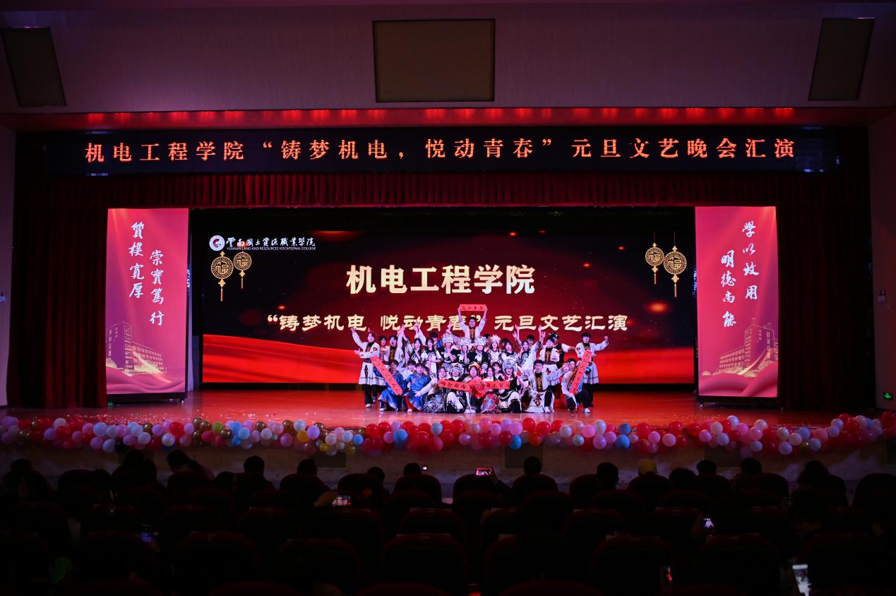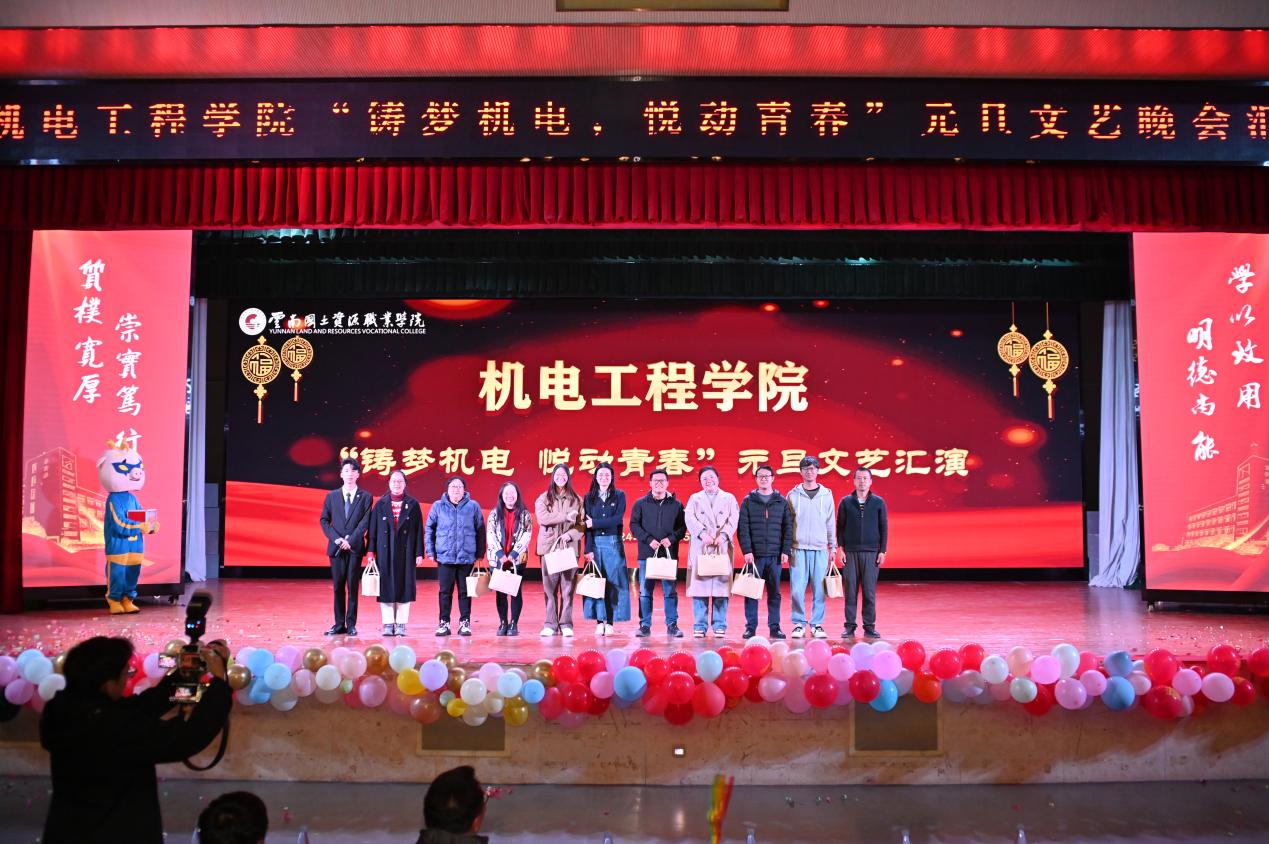 12月26日18:00,澳门网投十大信誉平台“铸梦机电,悦动青春”2025年元旦文艺汇演在明礼堂拉开帷幕,本次晚会有幸邀请到了建设工程学院党委书记李洪香、素质教育学院党总支书记苏和平、校团委书记罗之鹏、校团委副书记熊欢以及澳门网投十大信誉平台党委领导班子成员共同参加。晚会现场,还邀请了兄弟学院团总支负责人及老师担任专业的评委团,学院辅导员老师和24级班主任、24级同学们欢聚一堂,共同享受这场视听盛宴!