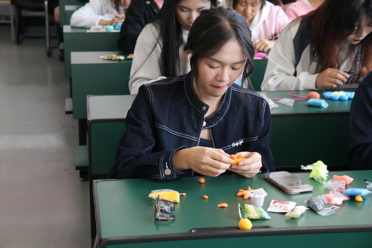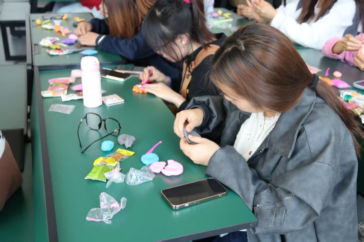 活动伊始,学院组织了粘土手工制作。从粘土的选择、色彩的搭配,到粘土的拼接、模型的调整,女同学们都耐心细致地实践,将手中的粘土巧妙搭配,创作出一件件精美的作品。这些匠心独运的创意手工,不仅向身边的女性表达了最深的敬意与爱意,更是一次心灵的触动,是对她们独特魅力与不懈努力的赞美。