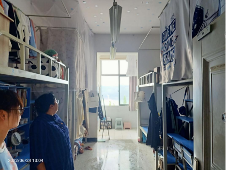 中午12:40,由一名教师和两名学生组成的10个检查小组,对绘水苑1、3、5栋宿舍进行了检查。检查内容主要包括:宿舍整体卫生状况、个人卫生情况、安全隐患、宿舍硬件设施情况等。