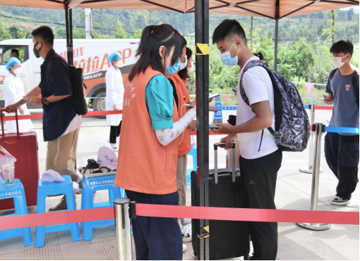 8月25日、26日,学院全体辅导员和志愿者们一直坚守阵地,他们分工明确、各司其职,有的负责行李消毒,有的负责测量体温,有的负责核验健康码、行程码和核酸情况,有的负责入校扫码;他们严格执行疫情防控各项要求,认真核准师生返校条件,实时关注师生返校动态;从日出到日暮,学院全体参加返校工作的师生热情服务,耐心引导,不仅确保了广大师生安全返校,还让返校师生感受到了“回家”般的温暖。