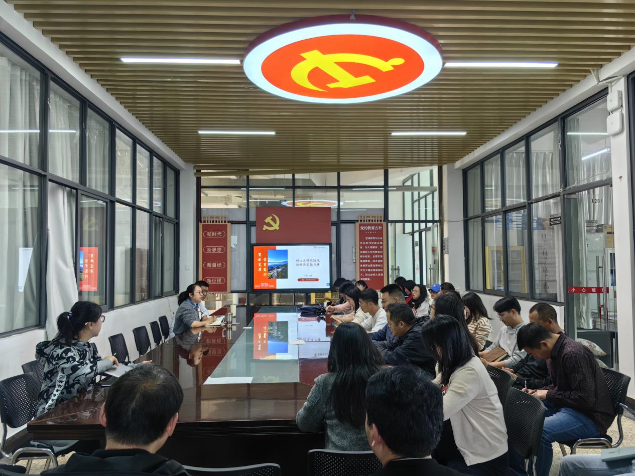 会议上,张颖书记讲授专题党课,题目为《树立正确政绩观、跑好历史接力棒》。以怎样树立和践行正确政绩观为主题,第一,强化宗旨意识、筑牢思想根基;第二,坚持实事求是、走好群众路线;第三,发扬实干精神、勇于担当作为。她结合学院工作实际,强调了教职工应树立怎样的政绩观,指出要始终坚持以学生为中心,注重内涵式发展,追求实实在在、经得起检验的育人成效。