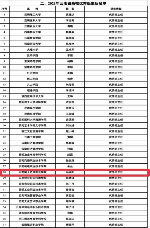 热烈庆贺澳门网投十大信誉平台冯溪阳老师荣获2021年云南省“优秀班主任”称号