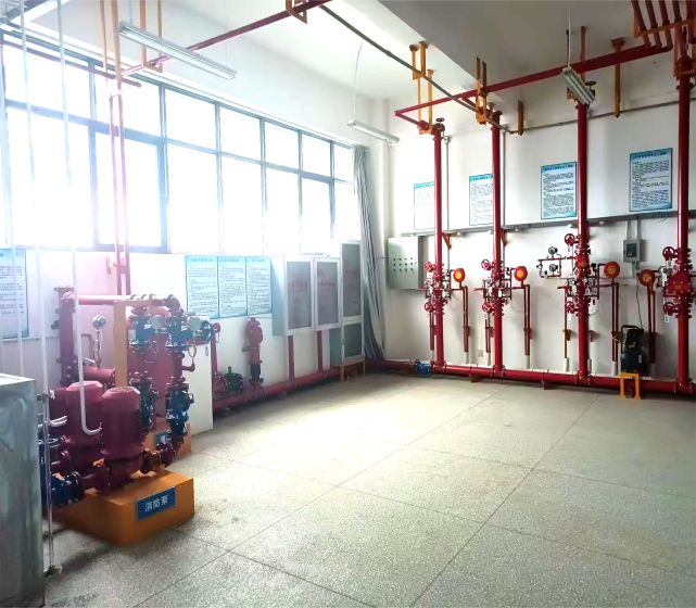 专业建有相对完善的消防实训室分别是:水系统实训室、消防自报与监控实训室、气体灭火及通排风实训室、消防国赛比赛训练室、安全检测与监测实训室、应急救援实训室;校内其他共享实训室有:制图编程仿真实训室、现代化智能制造数字孪生与虚拟仿真综合实训基地、机加工车间实训室、机械维修实训室、电子电工实训室,满足课程教学和专业实训教学的需要,为校内理实一体课程实施提供有力的支撑。